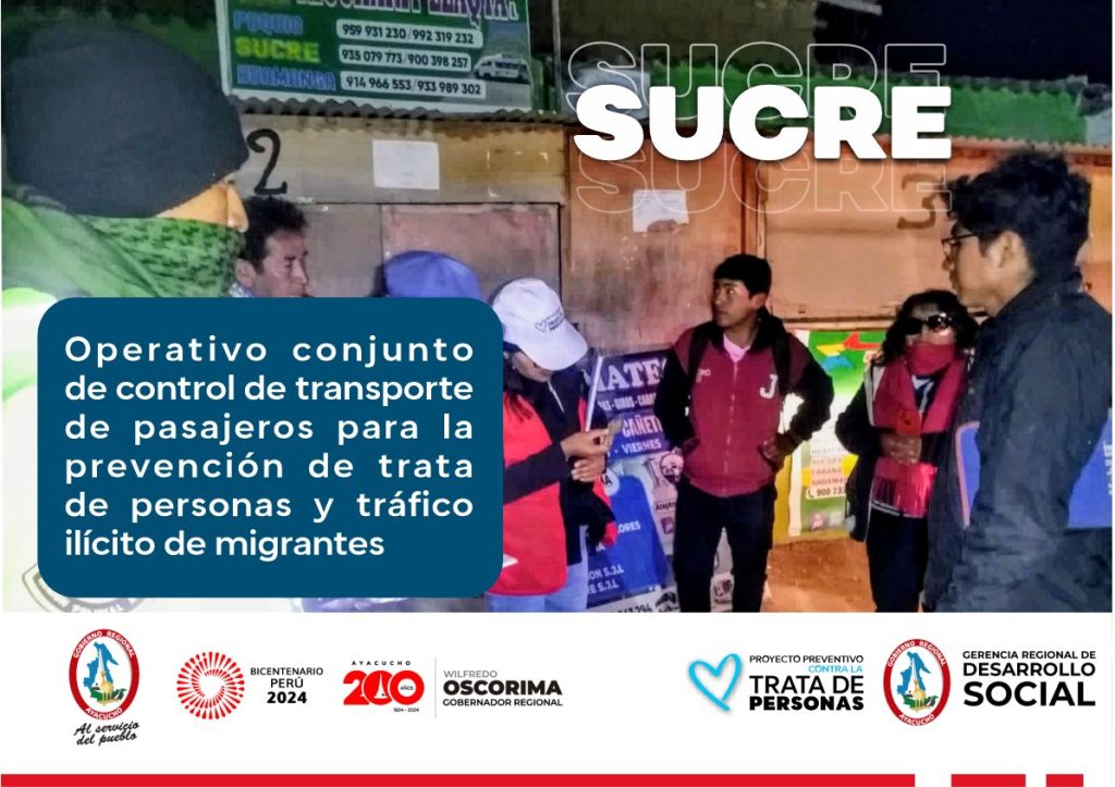 La Gerencia Regional de Desarrollo Social del Gobierno Regional de Ayacucho, en el marco del Plan de Acción contra la Trata de Personas y el Tráfico Ilícito de Migrantes, apoyó un operativo inopinado llevado a cabo en la provincia de Sucre, específicamente en Querobamba. Esta acción fue liderada por la Fiscalía Provincial Adjunta y contó con la colaboración de diversas autoridades locales comprometidas con la seguridad y protección de la comunidad.